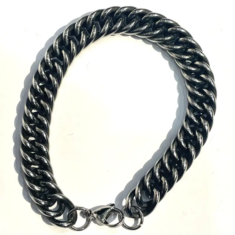 - The Double curb chain Bracelet is made of stainless steel, that is durable, water-resistant, anti-allergic, and doesn’t lose its colour. It can be worn on any occasion, every day. It is also easy to combine with other jewellery and clothing. Choose from two length options.