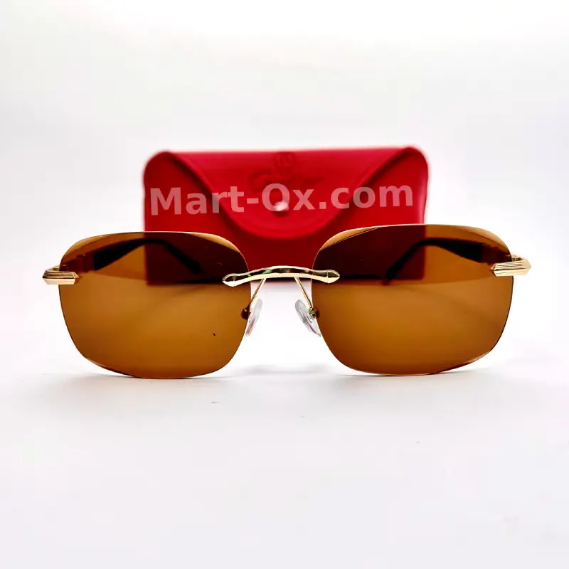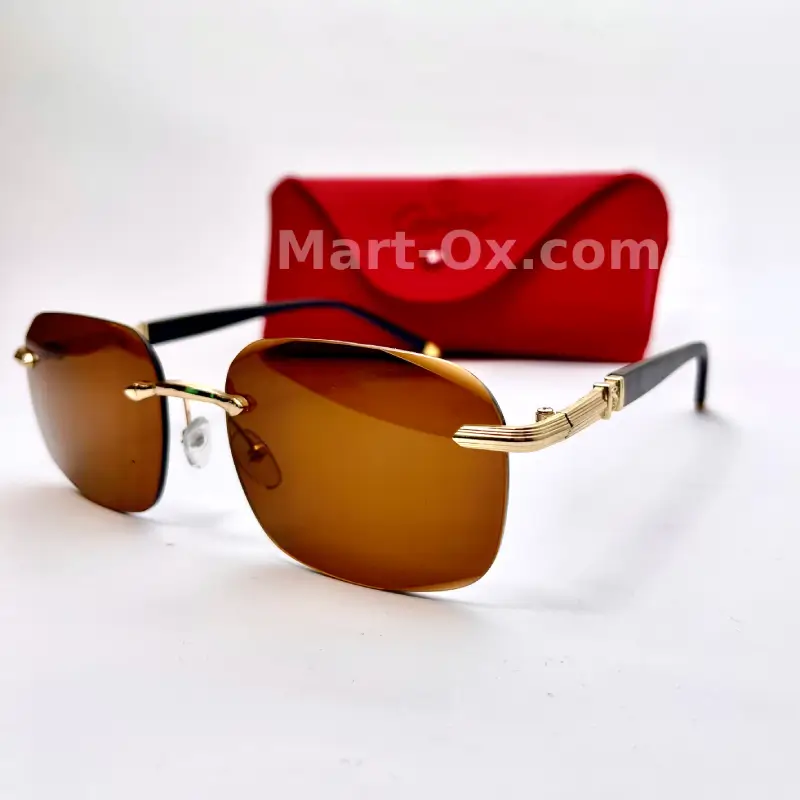 MartOx Old Money Rimless Sunglasses Brown lens Golden & BLack Temple Imperial Amber