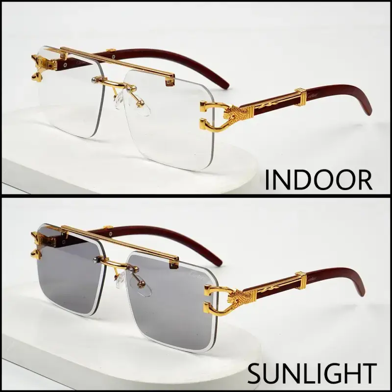 Upgrade your style and vision with Solar Cheetah Glasses (1 Glasses, 5 Benefits) — the perfect combination of luxury design and smart technology. These premium photochromic rimless glasses are designed to automatically adjust to changing light conditions, staying clear indoors and turning dark under sunlight.