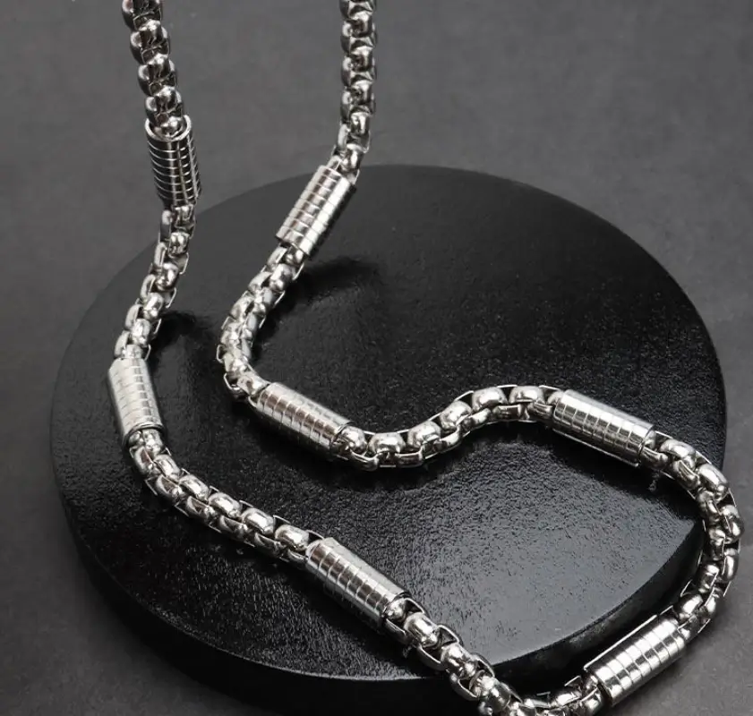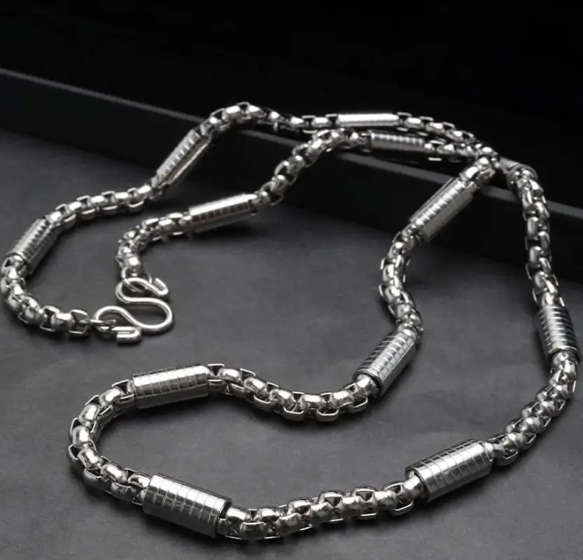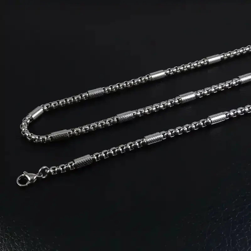 - This 4mm Silver-toned box chain is a timeless essential for every modern man. necklace offer Online Across Pakistan by Mart-ox.com is the perfect staple piece to every man’s jewellery collection. A Thin Round chain is the ultimate classic and the most popular chain type for men’s necklaces and other jewellery. The 4mm width suits perfectly for men who look for a subtle, Silver-toned necklace.