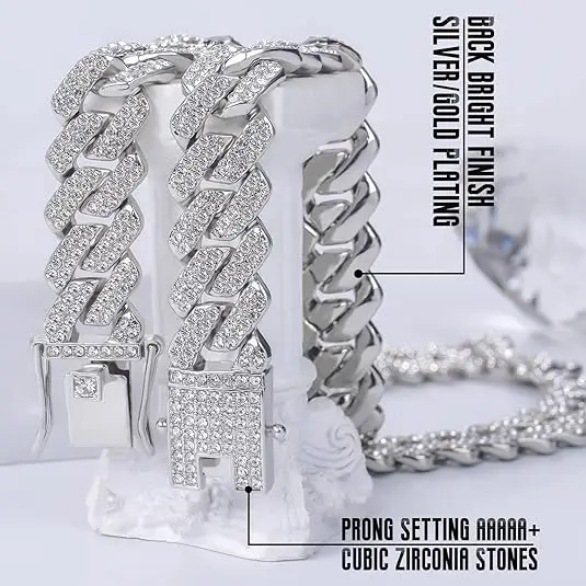 - This chain is constructed from high-quality alloy ,The Cuban chain is ensures durability, resistance to tarnishing, and a luxurious feel against your skin,the stones are meticulously set to create an icy effect, making it a true showstopper. Embrace the bling bling culture and stand out from the crowd with confidence!