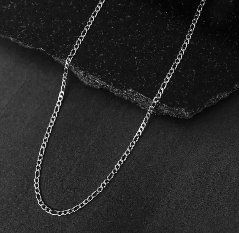 - This Silver-toned 3mm Figaro chain necklace offer Online Across Pakistan by Mart-Ox.com is the perfect staple piece to every man’s jewellery collection. A Figaro link chain is the ultimate classic and the most popular chain type for men’s necklaces and other jewellery. The 3mm width suits perfectly for men who look for a subtle, Silver-toned necklace.