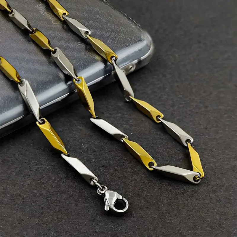 - The chain is made of 100% Titanium steel , that is durable, water-resistant, anti-allergic, and doesn’t lose its colour. It can be worn on any occasion, every day. It is also easy to combine with other jewellery and clothing.
